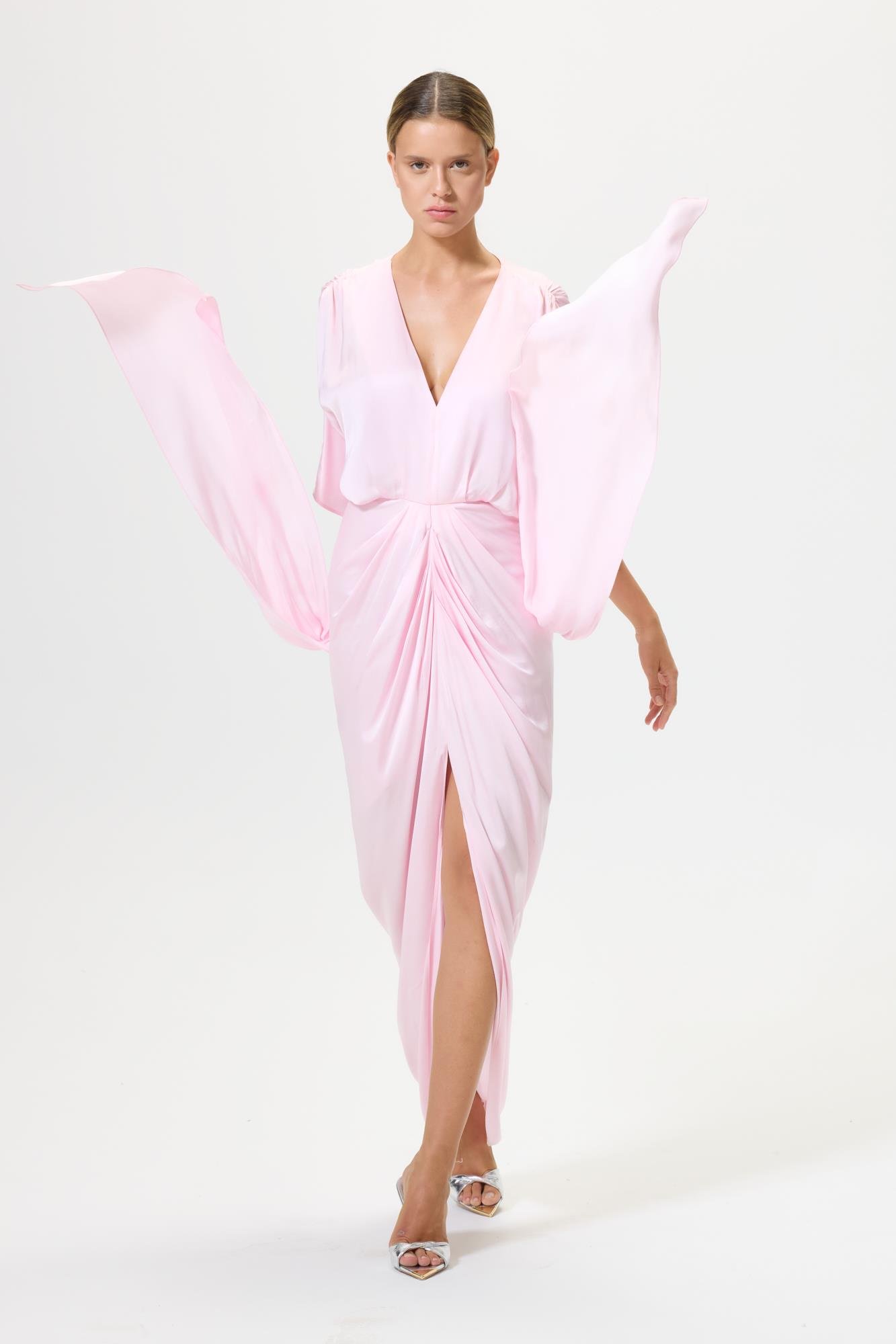 Reglan Döküm Kol, Önden Drapeli, V Yaka Gece Elbisesi